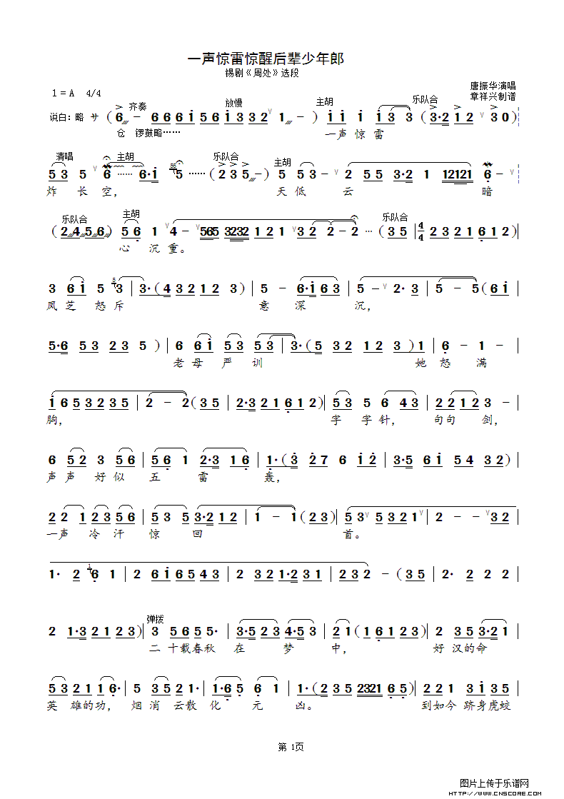锡剧曲谱:《周处》一声惊雷